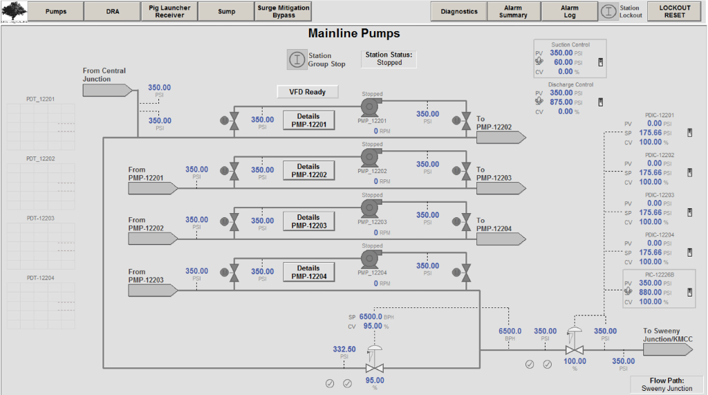 The team developed 150 PlantPAx graphics during the accelerated portion of the work, or up to 10-20 graphics per site. In total, the project required 750 graphics for Operator monitoring and control of the pipeline.